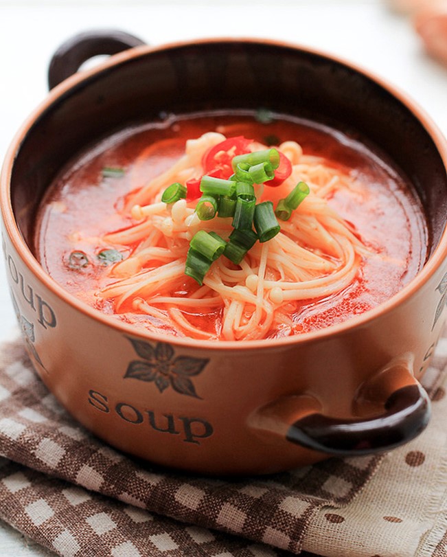 This is a Chinese mushroom recipe, it contains enoki mushroom seasoned and it’s so easy to make, if you’re out of time and you have no idea what to make this mushroom soup recipe is the one for you because it will take you only 10 minutes to make it!